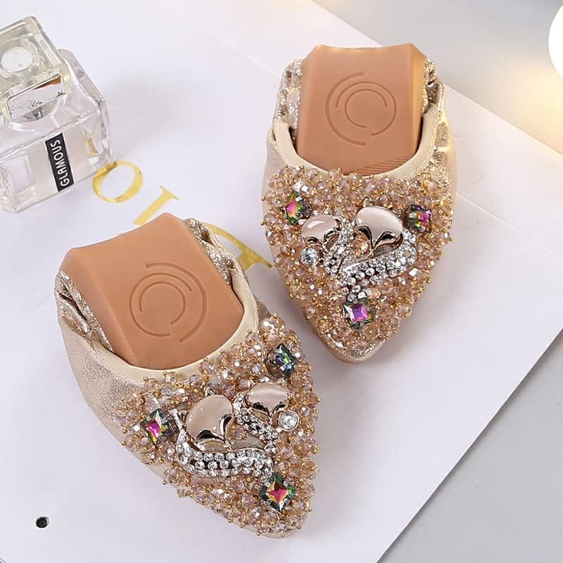 Women's Rhinestone Flats Sequins Wedding Shoes Comfort Pointed Toe Ballet Flat Shoe Low Heel Dress Shoe 5
