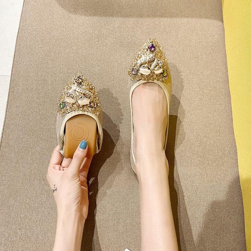 HOT ! Women's Rhinestone Flats Sequins Wedding Shoes Comfort Pointed Toe Ballet Flat Shoe Low Heel Dress Shoe