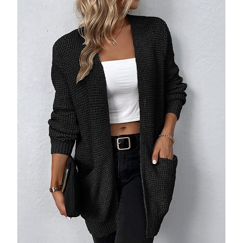 : The cardigan features a loose fit design, offering a relaxed silhouette that complements both casual and chic looks. Its long length adds an element of elegance, while allowing for versatile layering options.