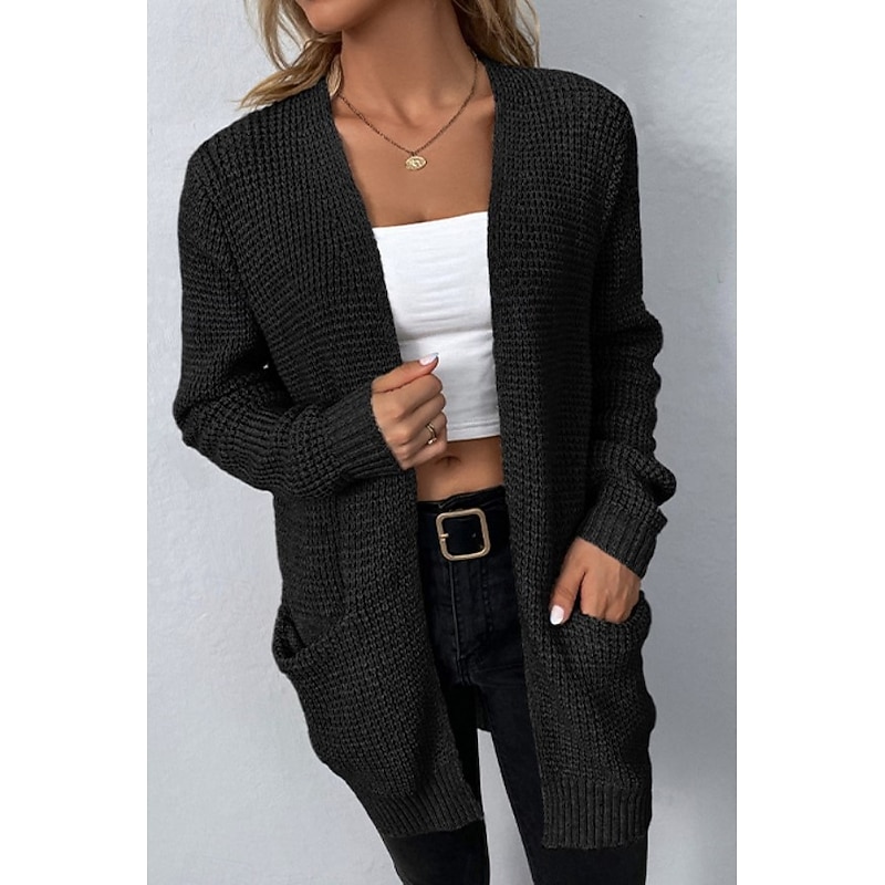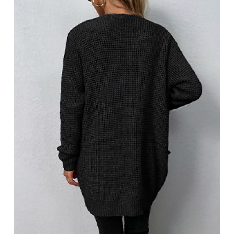 More information about Women's Cardigan Daily Casual Solid Color Crew Neck Knitted Textured Long Sleeve Long Tops Knit Home Work Daily Black Pink Fall Winter
