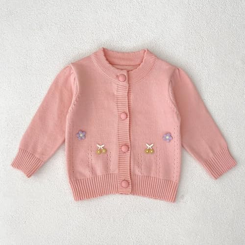 Kids Girls Button Down Cardigan Cute Flower Long Sleeve Knit Sweater School Uniform Casual Open Front Tops for Toddler 2