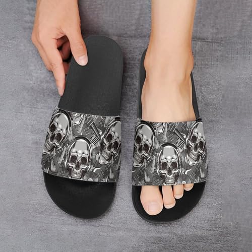 Retro Electric Guitar Skulls Rock Music PVC Slippers Sandals for Women Men Open Toe Soft Cushioned Non-Slip Sandal for Indoor Outdoor 7