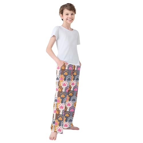 Colorful Cat Paw Print Pattern Boys Pants for Kids Jogger Pants with Pockets S-XL 6