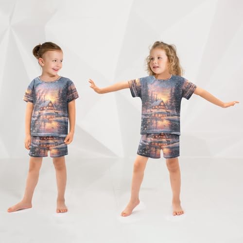 ALAZA Christmas Scene Snowflake Landscape Pajamas Set Short Sleeve Cotton Sleepwear Summer Pjs 2 Piece 5-14Y 1