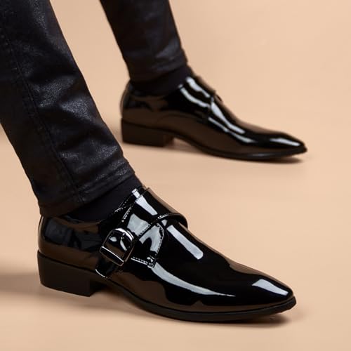 Men's Business Wingtip Dress Shoes Slip On Pointed Toe Classic Formal Business Shoes Faux Patent Leather Oxford Shoes 5