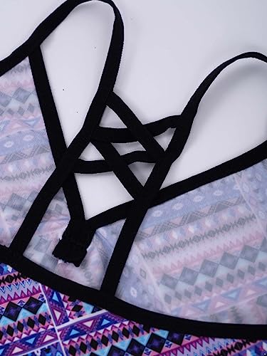 • Spaghetti shoulder straps, swim tops is printed with flower pattern, criss-cross and cutout back. Only Tag 12 to 16 has irremovable chest pads