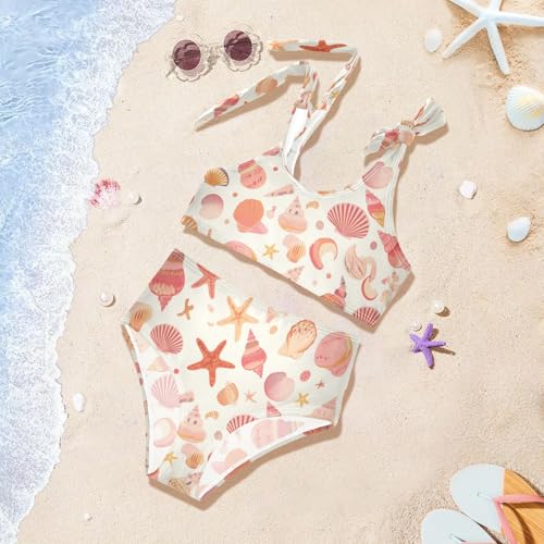 Seashells Different Shapes and Starfish Girl Two Piece Kids Bikini Set Quick-Dry Swimsuit Swimwear Adjustable Strap 5