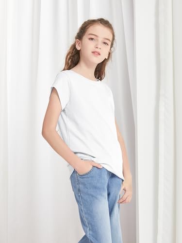 4 Pack Girls Shirts Cotton T Shirts Kids Crew Neck Tops Summer Short Sleeve Tees for Girls 2-18 Years 4