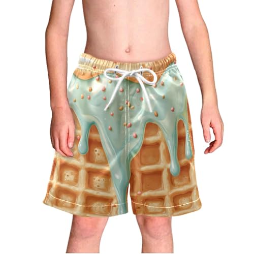 Pigsaly Boys' Swim Board Shorts Glaze Caramel Sprinkles Teal Coral Ice Cream Boy's Swim Trunks Kids Swimwear M 6