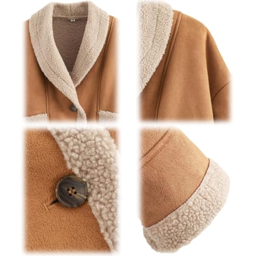 More information about Winter Casual Faux Suede Leather Jacket,Womens Fashion Lapel Button Fleece Lined Thicked Aviator Cropped Overcoat with Pocket