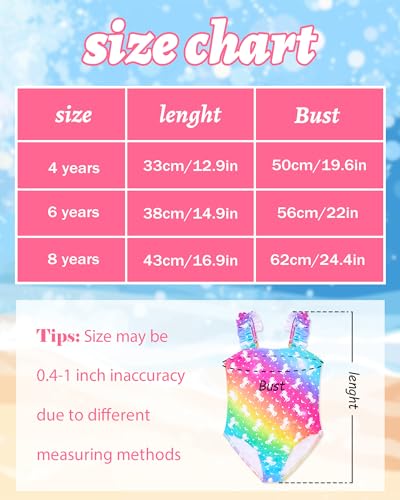 Girls Swimsuits One-Piece Bathing Suits Summer Kids Beach Swimwear Suits with Adjustable Strap Quick Dry Rainbow Unicorn 4