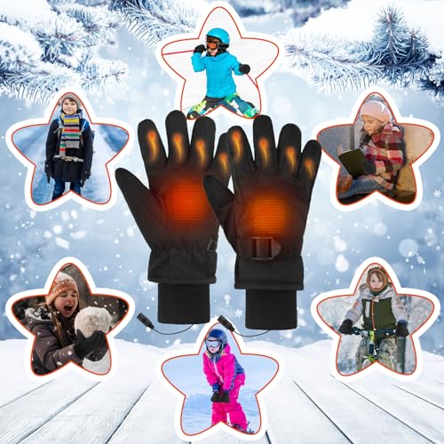 Newcotte USB Heated Gloves Electric Winter for Kids and Baby Snow Ski Waterproof Warm Gloves Boys Cold Weather 3