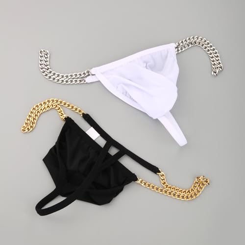 Evankin Men Sexy Thong with Metal Chains Hollow Out G-Strings Comfortable Ice Silk Underwear Bikini 5