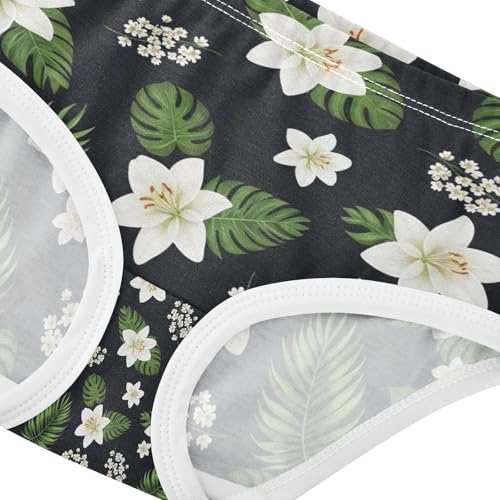White Lilies Green Leaves Underwear Toddler Girl, Cotton Underwear Girls, 2T–8 Years 4