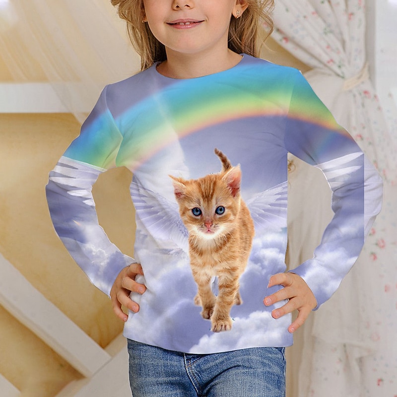 More information about Girls' 3D Animal Cat T shirt Long Sleeve 3D Print Fall Winter Active Sports Fashion Kids 3-12 Years Outdoor Daily Regular Fit