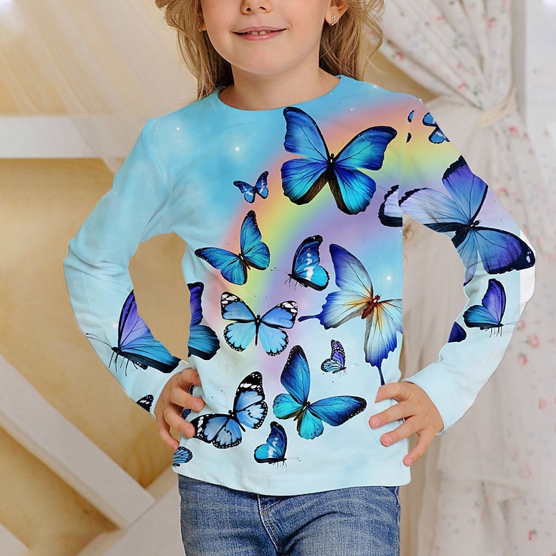 Girls' 3D Animal Cat T shirt Long Sleeve 3D Print Fall Winter Active Sports Fashion Kids 3-12 Years Outdoor Daily Regular Fit 27