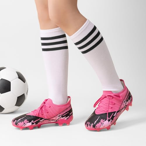 DREAM PAIRS Girls Boys Soccer Cleats Youth Firm Groud Outdoor Sports Athletic Mid-top Football Shoes for Little/Big Kid 6