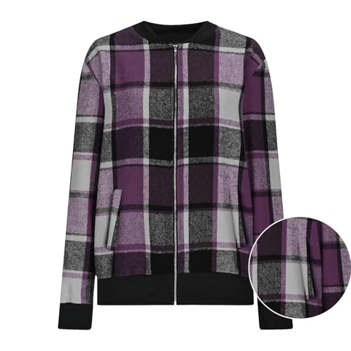 HOT ! Plaid Bomber Jackets for Women Full Zip Up Womens Fashion 2025 Trendy Fall Coats Flannel Shackets