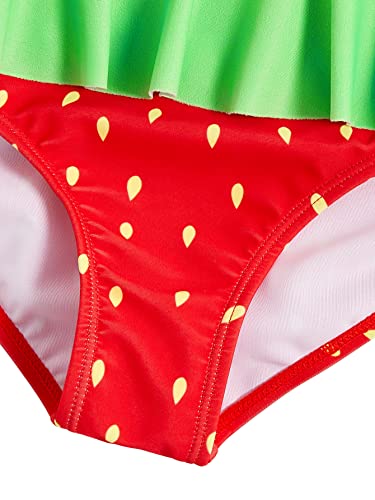 WDIRARA Girl's Strawberry Print Ruffle Hem Swimwear Shoulder Onepiece Swimsuit 6