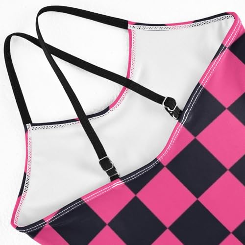 susiyo Girls One Piece Swimsuits Black Pink Checkered Bathing Suit Quick Dry Beach Swimwear for Toddler Girl 3-10T 2