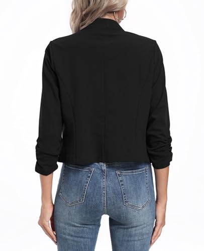 MINTLIMIT Cropped Blazers for Women 3/4 Ruched Sleeve Notched Collar Open Front Cardigan Business Casual Blazer Jackets 4