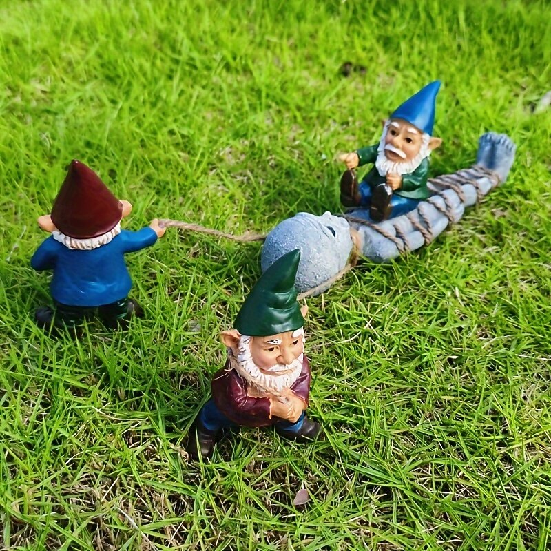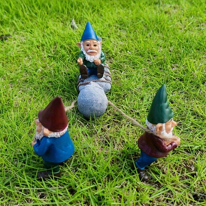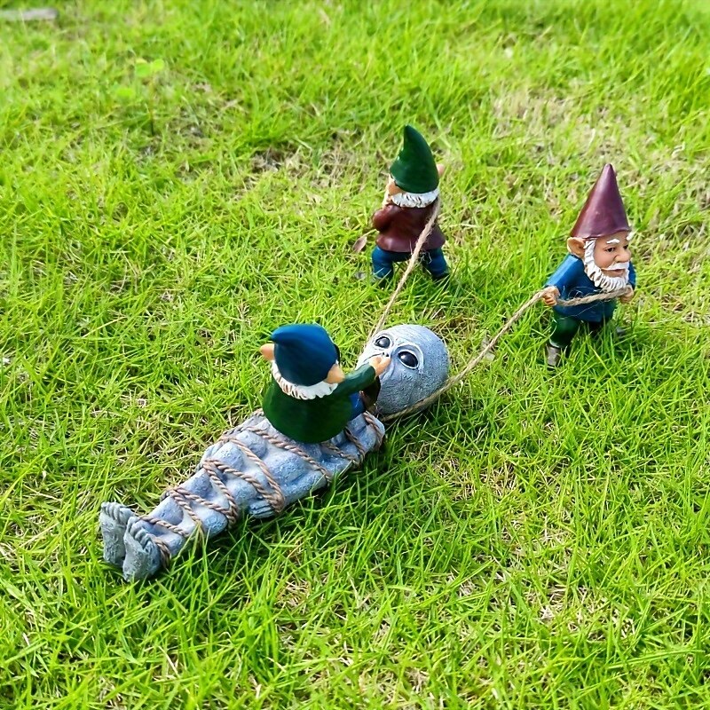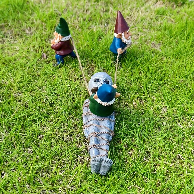 Whimsical Gnome Alien Capture Garden Statues - 3pcs Resin Grey 3.82in Tall Fun Outdoor Decor for Easter & Halloween 7