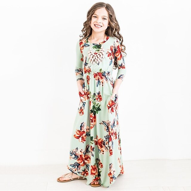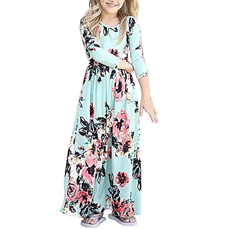 More information about Kids Girls' Dress Floral Long Sleeve Daily Beach Ruched Boho Beautiful Polyester A Line Dress Spring Fall 3-12 Years Light Blue Pink Black