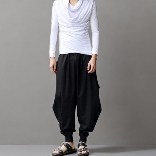 HOT ! ellazhu Men's Harem Pants Elastic Waist Black Sweaterpants for Men Yoga David Rose Costume Baggy Joggers GYM22 A