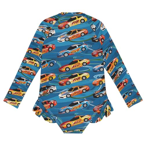 ALAZA Racing Car Blue Girls One Piece Swimsuit Long Sleeve Rash Guard Swimsuits UV 50+ Swimwear Zipper 1