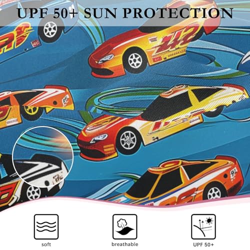 ALAZA Racing Car Blue Girls One Piece Swimsuit Long Sleeve Rash Guard Swimsuits UV 50+ Swimwear Zipper 5
