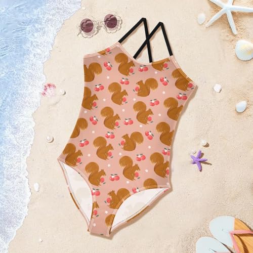 Girls Swimwear 3-10 Years One Piece Halter Swimsuit Squirrel Beach Bathing Suit 1