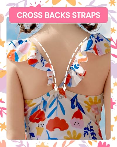 Angel season Girls Ruffle Floral One Piece Swimsuit and Toddler Girls Bathing Suit Bundle 5
