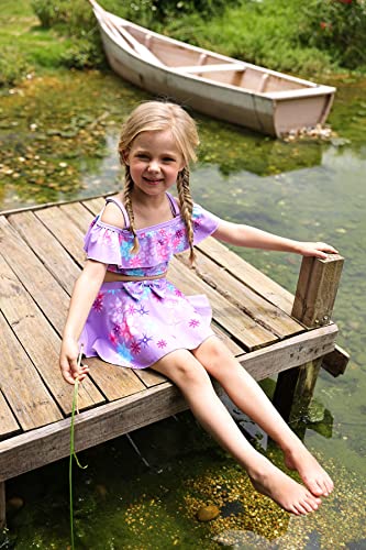 COTRIO Princess Bathing Suit for Girls Swimsuit Floral Ruffle 2 Piece Bikini Set Swimming Suits Off Shoulder Beach Swimwear 3