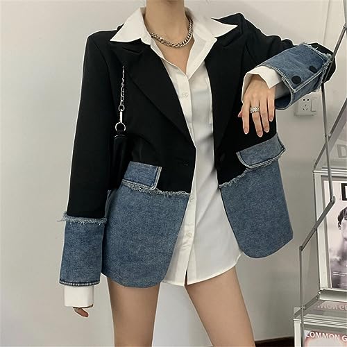 HOT ! Streetwear Korean Fashion Women's Patchwork Denim Blazer Coat Female Black Jackets Outwear