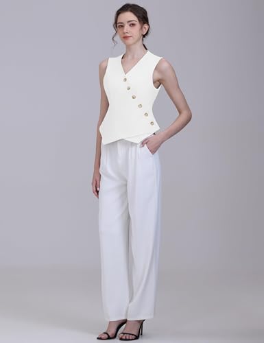 • VEST DESIGN - Women's fashion vests is designed with classic solid color, V-neck blazer vests, sleeveless style allows for easy layering, asymmetric front with diagonally-placed buttons, adjustable back strap offers you more accurate fit.
