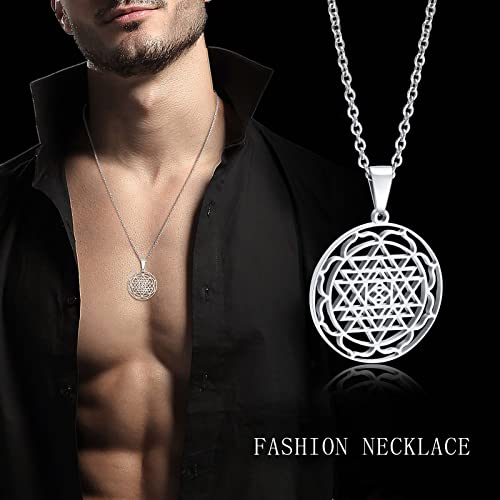 Stainless Steel Hinduism Symbol Sri Yantra Chakra Amulet Talisman Pendant Necklace, Meditation Jewelry 4