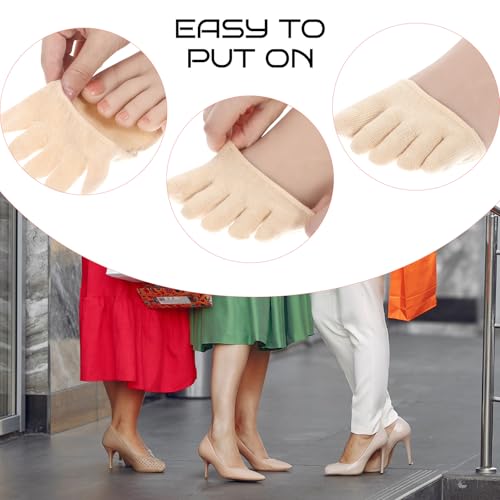 More information about 6 Pairs Toe Topper Socks Women, Invisible Toe Socks for Women, Non-Slip Five Toes Forefoot Pads, Half Sock for Heels to Relief Pain (Black and Light Khaki)