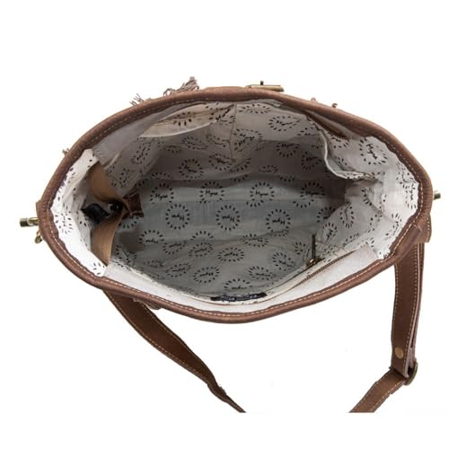 More information about Myra Bag Shoulder Bag for Women - Western Upcycled Canvas & Leather Gray