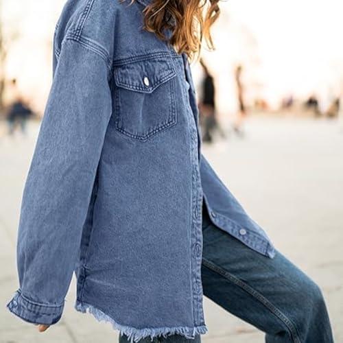trending ! 2025 Women's Casual Denim Button Down Distressed Jacket, Oversized Jean Jacket, Retro Casual Long Sleeve Shackets