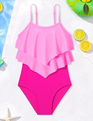 • chic and cozy: Our ruffle girls one piece swimsuits boast color block and 2-Tiered flounce design, matching chest pad and adjustable spaghetti straps for perfect fit, while ensuring comfort whether they're playing in the water or soaking up the sun.