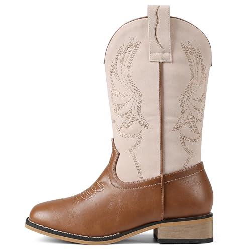 trending ! femflame Toddler Cowboy Boots Kids Cowboy Boots for Boys Girls Square Toe Mid Calf Riding Shoes Little Kid/Big Kid