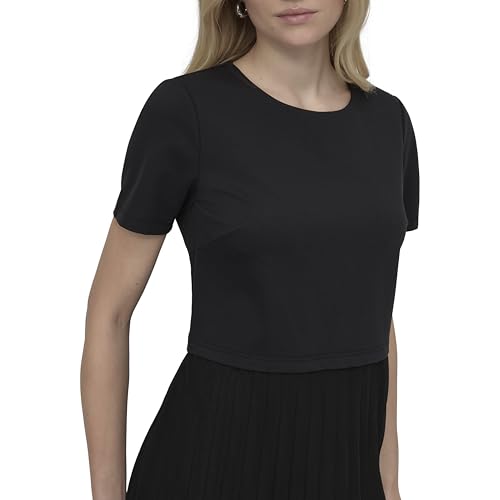 Why Choose DKNY Women's Short Sleeve Jewel Neck Pleated Skirt Keyhole Midi Dress?