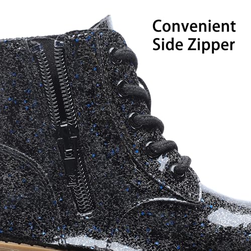 Girls Glitter Ankle Boots Side Zipper Combat Shoes with Lace Up for Toddler/Little Kid/Big Kid