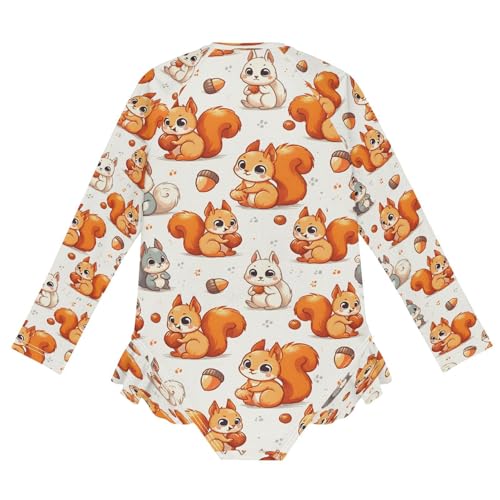 Cute Squirrel Eat Girls Long Sleeve Swimsuits One Piece Zipper Bathing Suit UPF 50+ Rashguard Swimwear