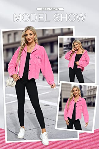 More information about Womens Corduroy Jackets - Y2K Cropped Casual Button Down Jacket Retro Washed Frayed Hem Shacket Coat