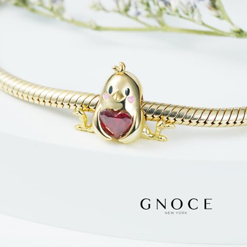 GNOCE Little Yellow Chicken Charms Embraces Heart Gemstone Charm Bead 925 Sterling Silver Gold Plated Fit Bracelet/Necklace For Mother's Day Gift