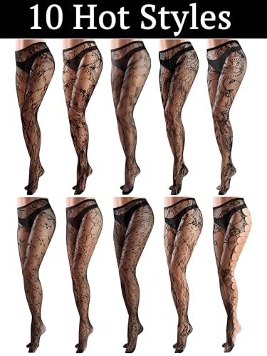 Fabric type: SpandexCare instructions: Hand Wash OnlyOrigin: ImportedLarge Quantity to Choose from: promoting 10 pairs of different styled fishnet tights for women in a sleek black color, these pattern stockings are crafted to enhance sophisticated style and a pull of enticement; Featuring intricate roses, flower prints, leopard print, net and other patterns, these fish net stockings for women provide an upgrade for your wardrobeResilient Spandex Material: outstandingly designed using stretchy spandex material, these printed stockings for women seamlessly fit, providing comfort for most body types; With the size being medium, our fishnet tights are tailored to fit various body types; Embrace your figure with stockings that flatter your body shape while feeling comfortable and relaxingAmple and Assorted: no worries about running out of stylish options with these pattern stockings; You will receive 10 pairs special floral lace tights, providing a different style statement every time you step out; Whether it's a grand affair or a casual outing, attract attention with these charming designsExquisite Patterns: offering flexibility in stylish, these fish net tights can be paired with various outfits; Whether you're dressing up with a skirt and high heels for a classy look, dressing down with sportswear and a t shirt for a casual day, or pairing with a jacket and boots for a rugged look, these lace tights add a stylish touch to many outfitsIdeal Accessory for Celebrations: ideal for spicing up parties, these pattern stockings for women are ideal for holiday activities, social gatherings, and even your daily life; They are a push for an impressive and appealing style, suited to grace many occasions Perfect for everyday use. superior materials and excellent craftsmanship ensure long-lasting durability.