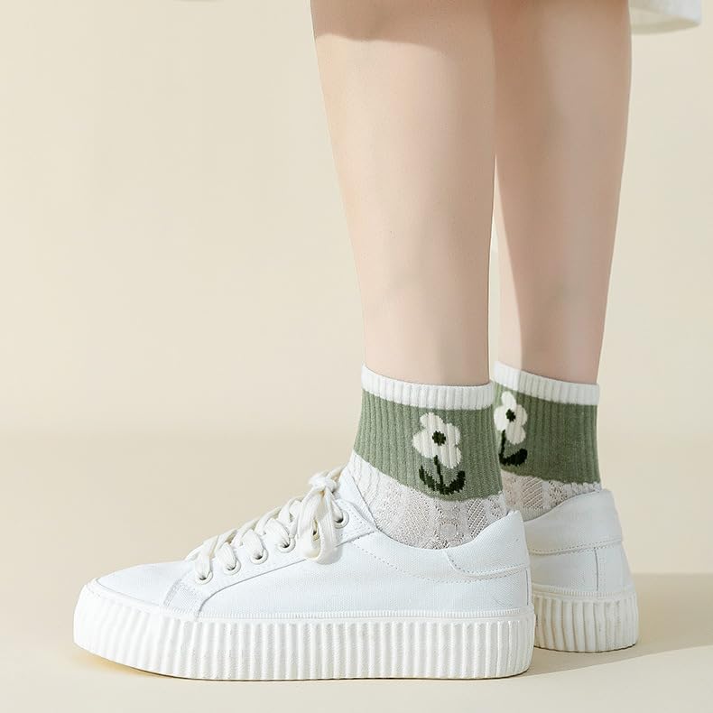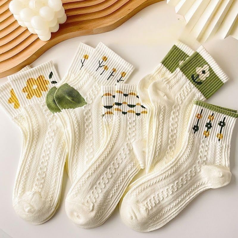 Fabric type: AcrylicCare instructions: Machine WashOrigin: ImportedFit type: Stretchy1. Soft & Breathable Cotton Material: Made from pure cotton, these socks are soft, breathable, and comfortable for all-day wear. The material keeps your feet warm yet fresh, offering perfect stretch and comfort throughout the day.2. Cute Cottagecore & Coquette Style: Featuring a charming floral pattern, these ankle socks exude a fairycore vibe. Their unique design adds a touch of sweetness to your outfit, highlighting your feminine and playful side.3. Versatile & Practical: These ankle socks pair beautifully with casual shoes, sneakers, canvas shoes, and more. Keep your feet dry and comfortable with the moisture-wicking fabric, ensuring a refreshing experience all day long.4. Perfect Gift Idea: These fun and stylish socks make a thoughtful gift for women and girls. Ideal for special occasions like birthdays, back-to-school, holidays, or just as a surprise for your mom, sister, or girlfriend.5. One Size Fits Most: Designed with a stretchy fit, these socks comfortably fit most women and girls sizes 5-8. You'll receive five pairs of socks in each pack, giving you a variety of charming designs to wear. Perfect for everyday use. superior materials and excellent craftsmanship ensure long-lasting durability.