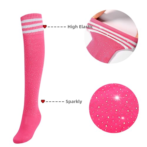 • 【Design】Over the knee high stockings, with stripes at the top, embellished with firm and sparkling rhinestone. Ideal choice to wear for party, evening events, holiday, sports and occasions