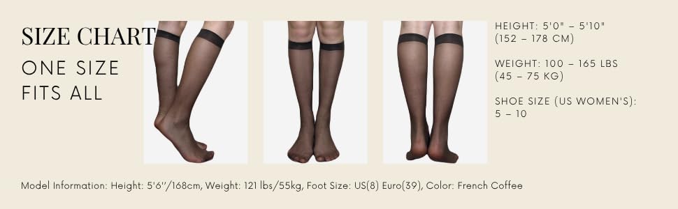 Fabric type: 100% NylonCare instructions: Hand Wash Separately In Luke Warm Water, Drip Dry, Do Not BleachOrigin: ImportedPattern: SolidPACKAGE CONTENTS: Set of 3 pairs of sheer knee-high stockings in retro beige color, perfect for everyday wearUNIVERSAL FIT: One size fits all design ensures comfortable wear for most users with stretchy nylon materialMATERIAL: Made from 100% premium nylon fabric that provides a smooth, comfortable feel against the skinCARE INSTRUCTIONS: Hand wash separately in lukewarm water, drip dry only, do not bleach to maintain qualitySTYLE: Classic knee-high length with sheer finish creates an elegant, fashionable look perfect for formal or casual occasions Perfect for everyday use. premium materials and excellent craftsmanship ensure long-lasting durability.